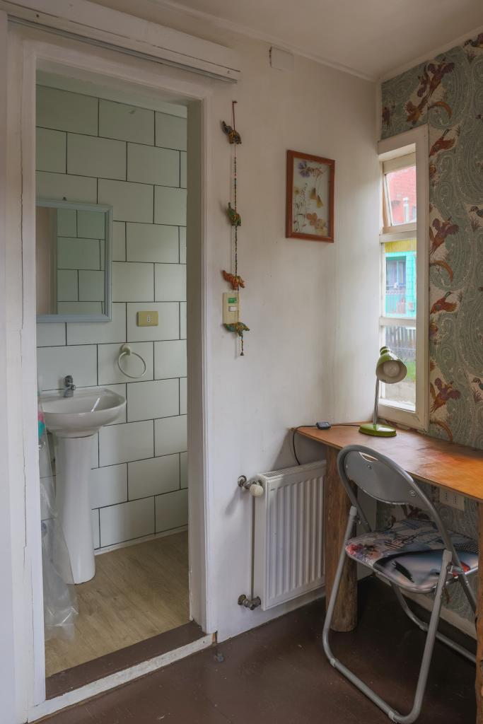 Pequeña habitación de dos pisos con cama de 1½ y pequeña litera con vista al Barrio Palafitos de Gamboa y vista parcial al mar, baño privado, escritorio y armario. Incluye un exquisito desayuno con increíbles vistas al fiordo de Castro y al río Gamboa, calefacción central y WIFI.