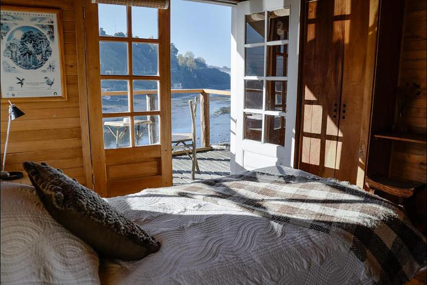 Habitación con cama doble, amplio balcón y hermosa vista frontal al mar. Incluye un exquisito desayuno con increíbles vistas al fiordo de Castro y al río Gamboa, baño privado, calefacción central y WIFI.