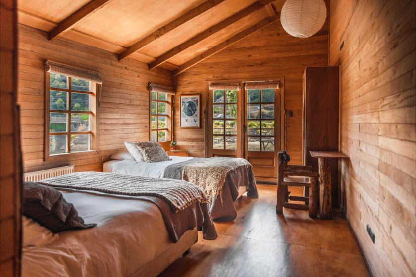 Habitación con camas twin. Incluye un exquisito desayuno con increíbles vistas al fiordo de Castro y al río Gamboa, baño privado, calefacción central y WIFI.